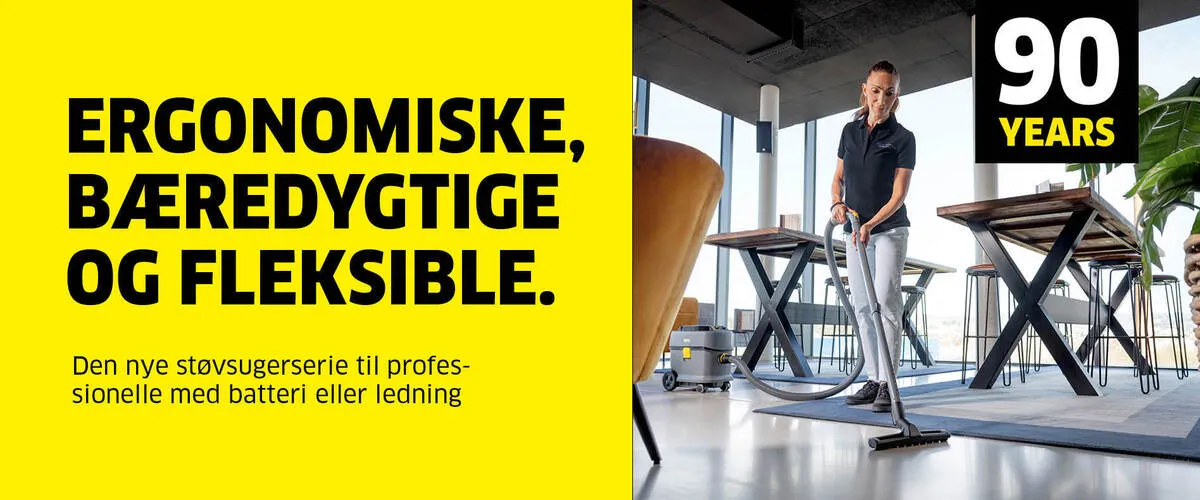 Som verdens førende producent af rengøringsmaskiner forstår vi, at vores erhvervskunder, uanset hvor de måtte befinde sig på kloden, har deres egne, unikke rengøringsopgaver. Vi forstår også, at rengøring er en nødvendighed, der ofte er meget lidt tid til. Derfor er vores serier af erhvervsrengøringsmaskiner, tilbehør og rengøringsmidler designet sammen med vores kunder for at opfylde deres behov. Uanset virksomhedstype og placering yder Kärchers produkter fremragende rengøring, sparer tid og ressourcer og er intuitive at betjene: På denne måde kan virksomheder fokusere på, hvad der er vigtigst for dem.