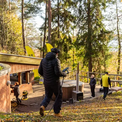 Kärcherin 90-vuotisjuhlien kunniaksi järjestimme 90 pesutempausta eri puolilla maailmaa. Me suomalaiset valitsimme valitsimme tietenkin kohteeksi saunan ja tavoitteen oli löytää kohde, joka on todella ahkerassa käytössä. Tällainen löytyi Espoon Otaniemestä, tutummin sanottuna Teekkarikylästä. Aalto-yliopiston ylioppilaskunnan omistama Rantasauna tarjosi mahdollisuuden testata erilaisia ratkaisuja myös ulkoalueiden puhdistamiseen lokakuussa 2025.