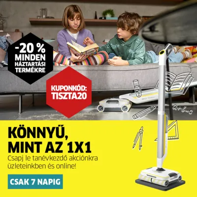 *A kedvezményes kuponnal minden háztartási termékre 20% kedvezmény vehető igénybe 10 000 Ft feletti vásárlás esetén a karcher.hu webáruházban.