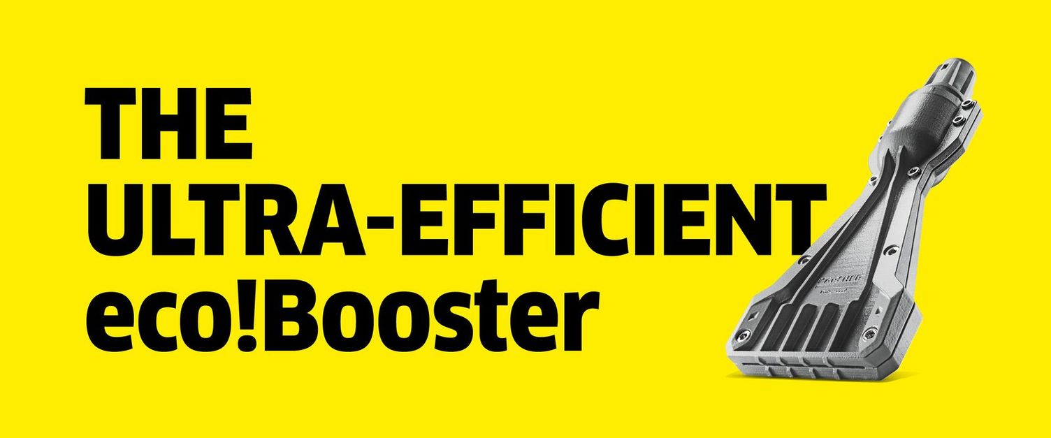 The new ultra-efficient eco!Booster from Kärcher. Get a 50 percent higher cleaning performance than with the Kärcher flat jet nozzle, all while saving water, energy and time. This might just deliver our biggest WOW factor yet.