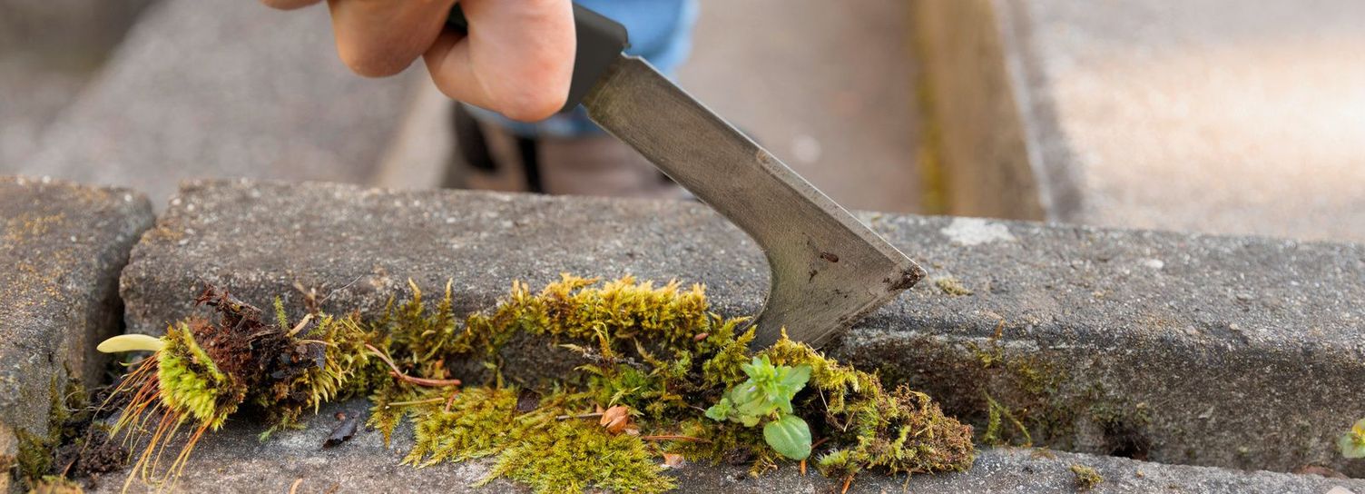 If you want to remove moss effectively from large areas, a solution of 10 litres of boiling water and 15 to 20 grams of soda makes the perfect solution. Before applying the solution, roughly remove the moss from, for example, patio pavers you want to clean on a dry day and then spread the soda water over the area with a broom. Ideally, the fizzy drink solution should be left to work for a few days, but if you’re pressed for time, at least five hours will do. Afterwards, the mossy residues can be easily removed with a scrubbing brush. For delicate floors made of marble, natural stone and limestone, a mixture of 15 grams of potassium permanganate and 10 litres of boiling water is suitable. It is used in the same way as the fizzy drink mixture but should first be tried out on an inconspicuous area. Its use is recommended only on impregnated floor coverings, because the potassium salt may not only turn the water brownish purple but also the floor. It is essential to wear gloves when working.