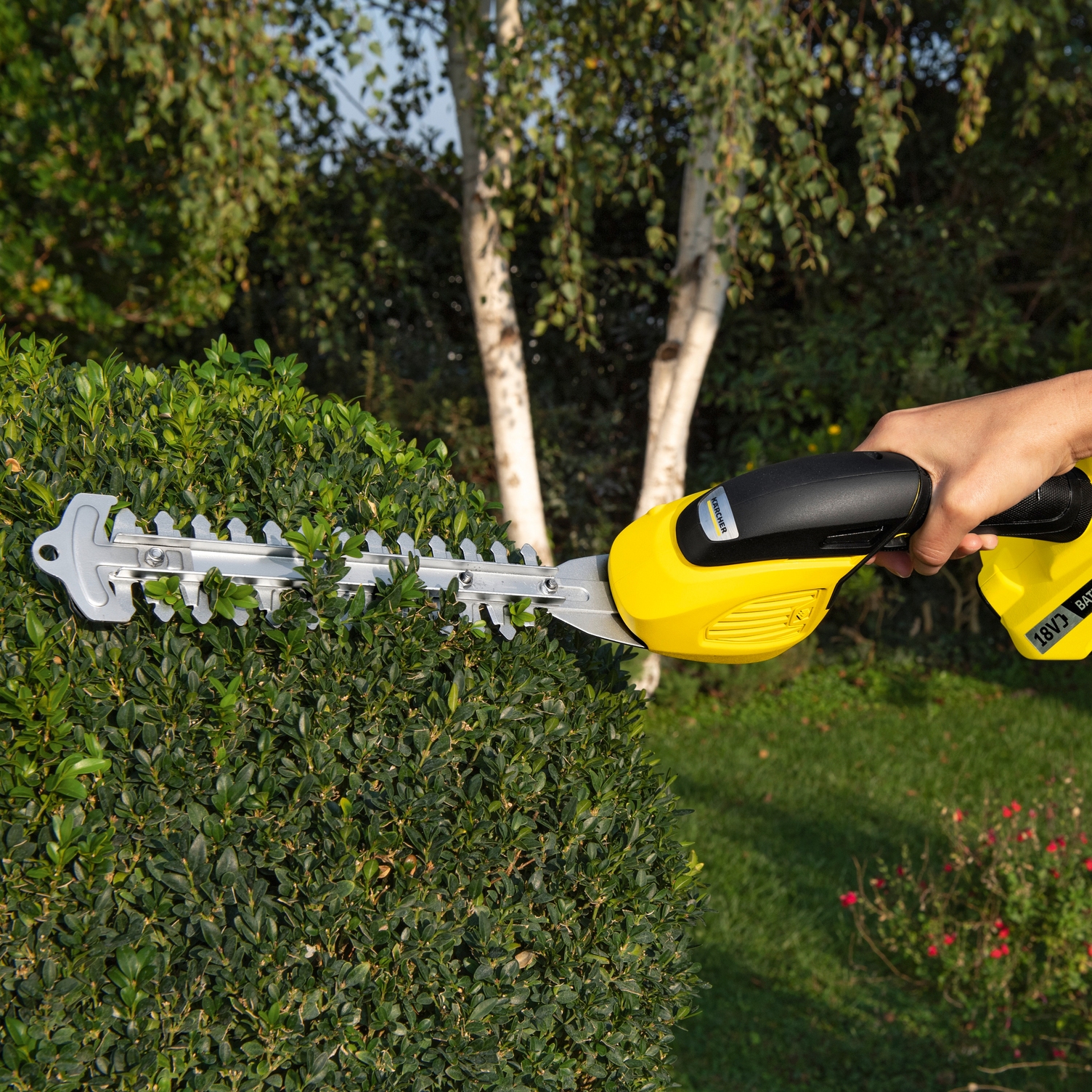The Kärcher battery-powered grass and shrub shears are perfect for fine and precise work in your garden. Thanks to the proven 2-in-1 system, shrubs, hedges and bushes, as well as smaller lawn areas, can be quickly and easily trimmed. The result is clean edges that give your garden a well-kept appearance.
