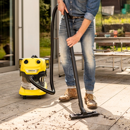 Need to quickly vacuum your car? No problem! Thanks to the special accessories for interior car cleaning and compact design, the battery wet and dry vacuum cleaner on the 18 V Kärcher Battery Power battery platform impresses with its versatility and pushes the boundaries of cleaning. A miniature powerhouse!