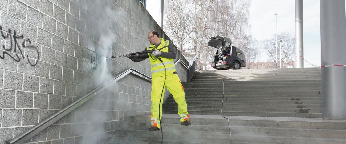 High-pressure cleaners are a staple when it comes to efficient cleaning and cleanliness. Compared with methods without pressure, they are characterised by low water consumption and high cleaning power. Heated high-pressure cleaners offer even more benefits, as they generate hot water up to 80 °C and tackle stubborn dirt even faster and more effectively. For commercial users, the combination of hot water and high pressure offers greater cost-effectiveness, in addition to clear advantages such as shorter drying times and a reduced need – or even no need at all – for cleaning agents.