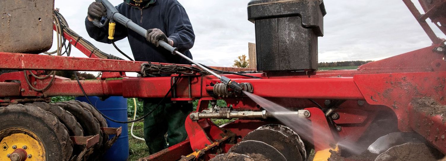 You should use high-pressure instruments on soil cultivators at a distance of 20-30 centimetres to remove dirt and soil. Since ploughs, rotary harrows and other instruments are very robust, they can withstand pressure from a closer distance.