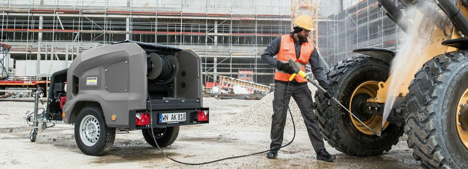 Intermediate cleaning of construction equipment on the construction site: cold water high-pressure unit