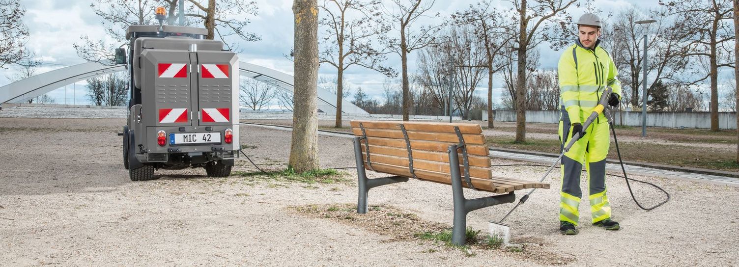 | Up to 98 °CKill the parts of plants above ground and the roots below using hot water. | > 100 °CSteam cleaner with additional foam production. The foam is used for insulation purposes and is intended to prevent the steam from cooling too quickly. | > 100 °CKill the parts of plants above ground. However, heat transfer from steam is nowhere near as effective as that from hot water. Roots are not effectively attacked. | > 350 °C Kill weeds using intense heat from hot air. | > 400 °C The plants are heated using burning gas, causing them to die and partially burn. | Weed brushes and strimmers remove the plants from the roots. | Herbicide is applied to the leaves using a spray unit. |