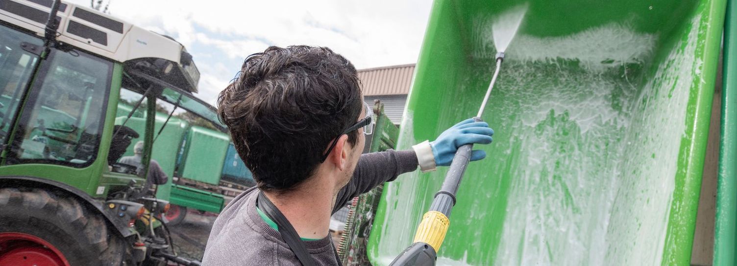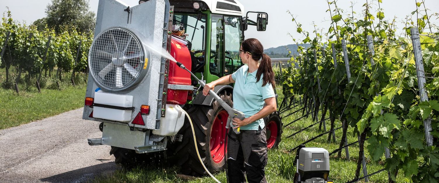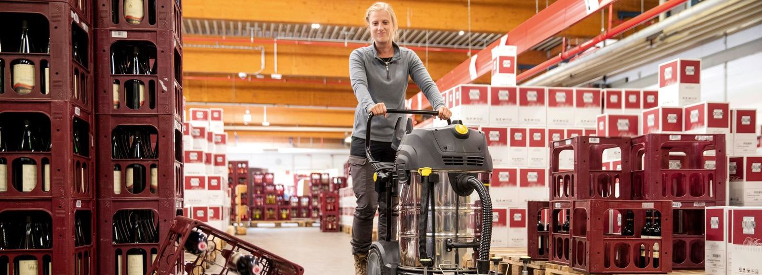 The tank and barrel interior cleaning in the wine cellar is done after each emptying with automatic systems or with a high-pressure cleaner. Outside, the tanks can be cleaned with telescopic facade cleaning brushes, which are available as accessories for the high-pressure cleaner. To clean the floors, high-pressure cleaners with area cleaners as accessories and scrubber-driers are especially suitable.
