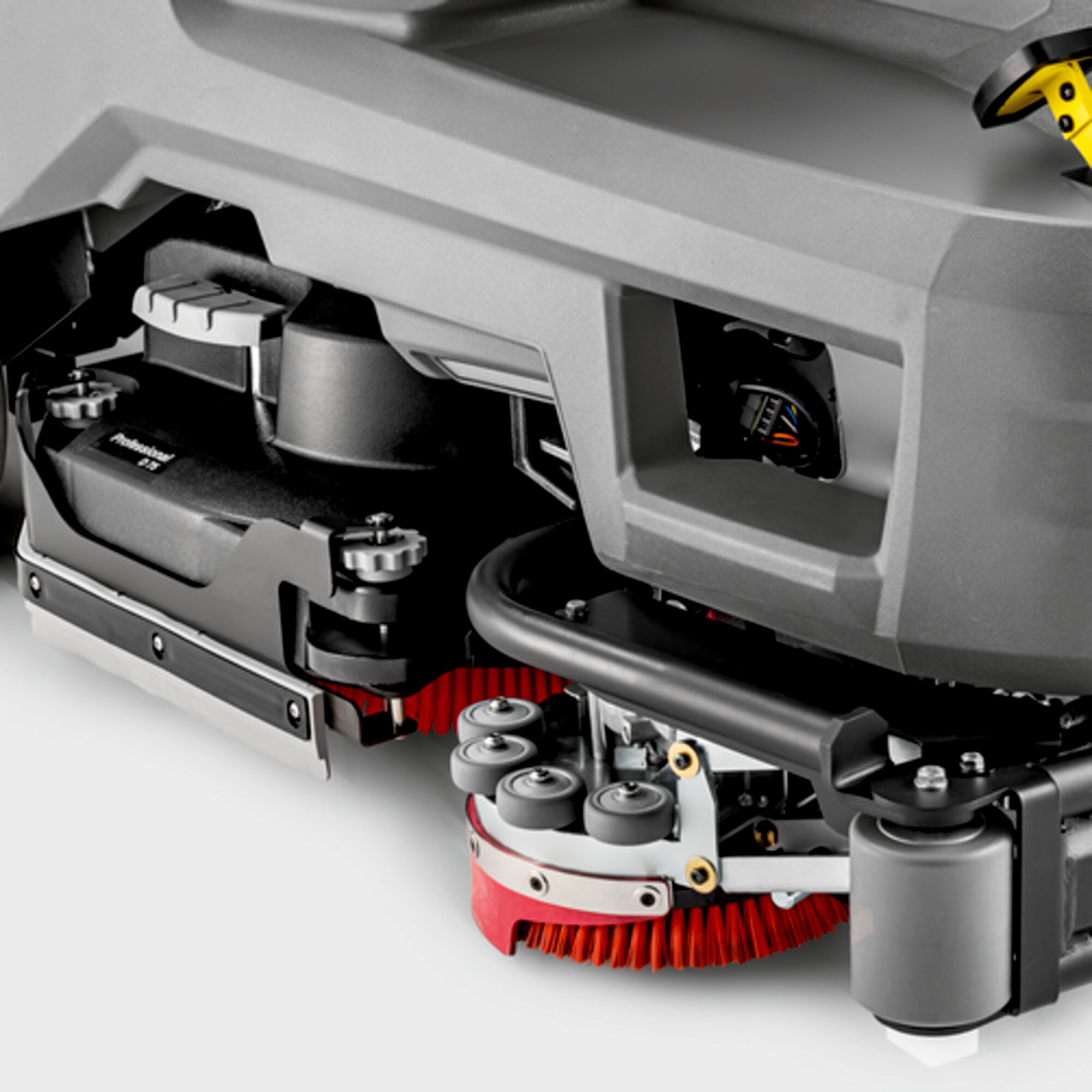 The 110 litre fresh water and dirty water tanks, as well as the Auto Fill function, of the ride-on scrubber dryer B 110 R permit area performances of 5100 m² per hour.Drive type | Battery |