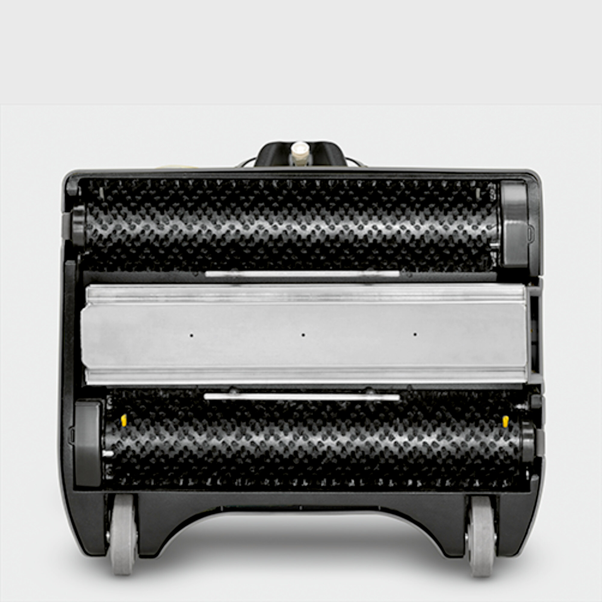 High cleaning performance through high contact pressure. Simultaneously cleans deep into the pile from two sides and raises the pile. Ensures uniform floor contact also on uneven surfaces.