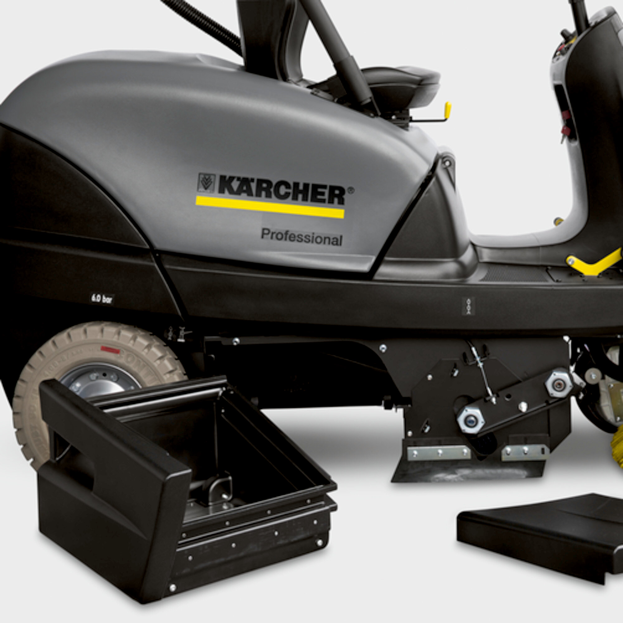 Comfortable, modern ride-on sweeper for professional use indoors and outdoors for areas from 6,000 m²/h to 7,800 m²/h.Traction drive | DC motor |