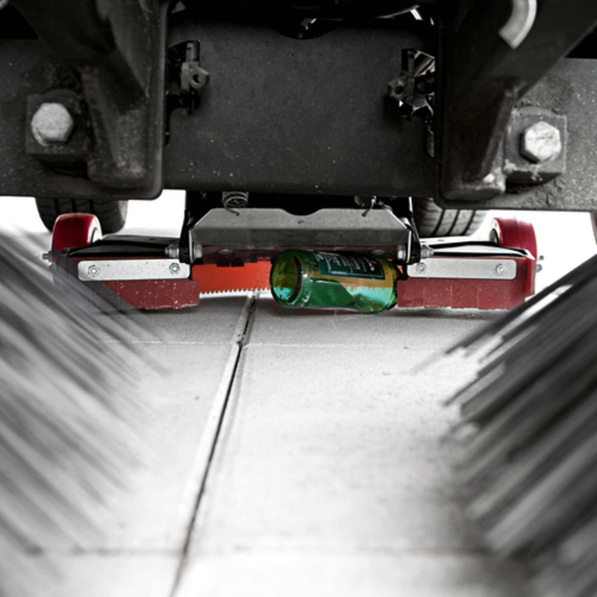 Pendulum-suspended sweeper mechanism with load relief and hydraulic floating position for constant contact pressure. Optimal sweeping results, even on uneven ground. Low fuel and water consumption and reduction of exhaust gas quantity and operating noise.