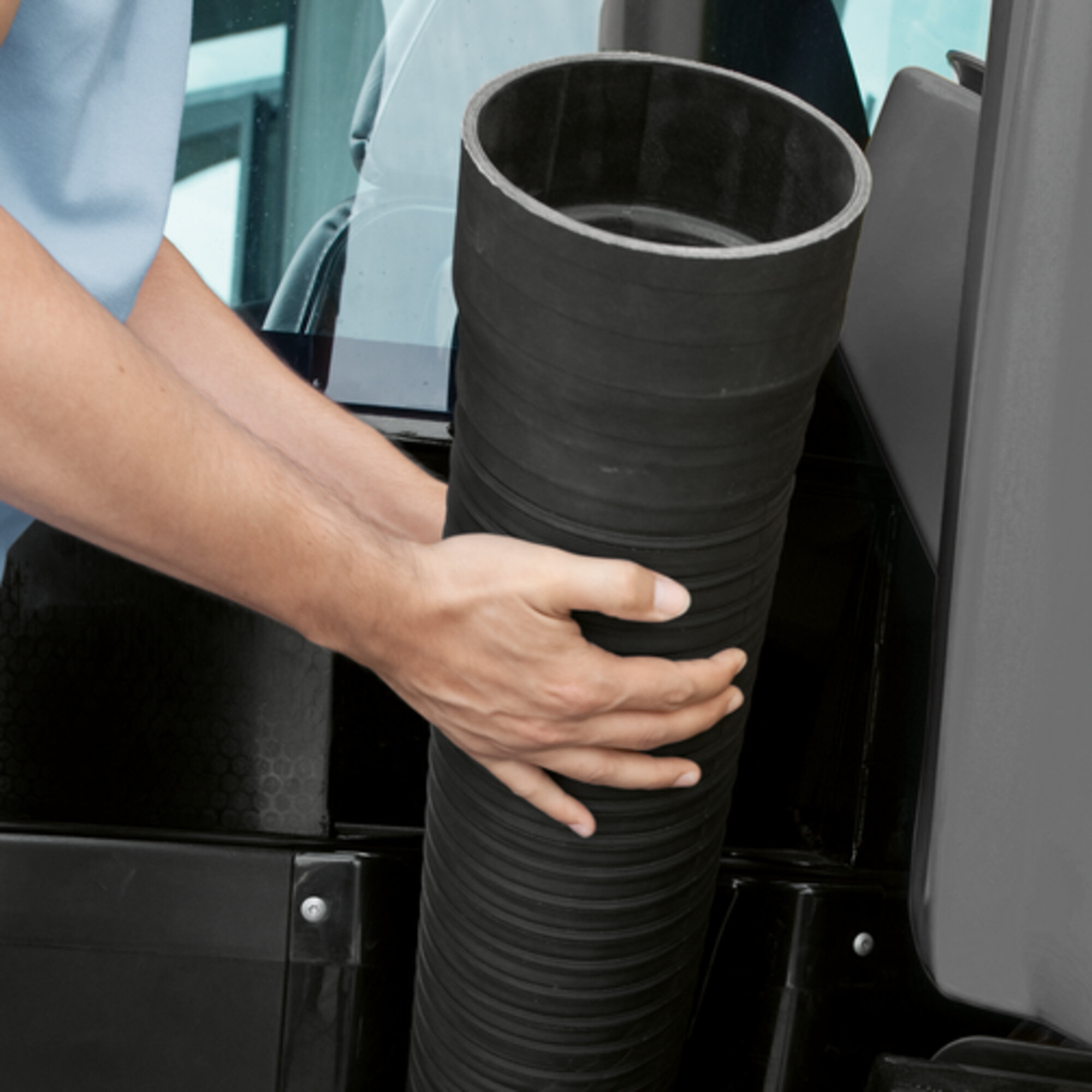 Minimises the risk of blockages. The suction tube between the suction mouth and the waste container can be extracted using two handles and with no need for tools.