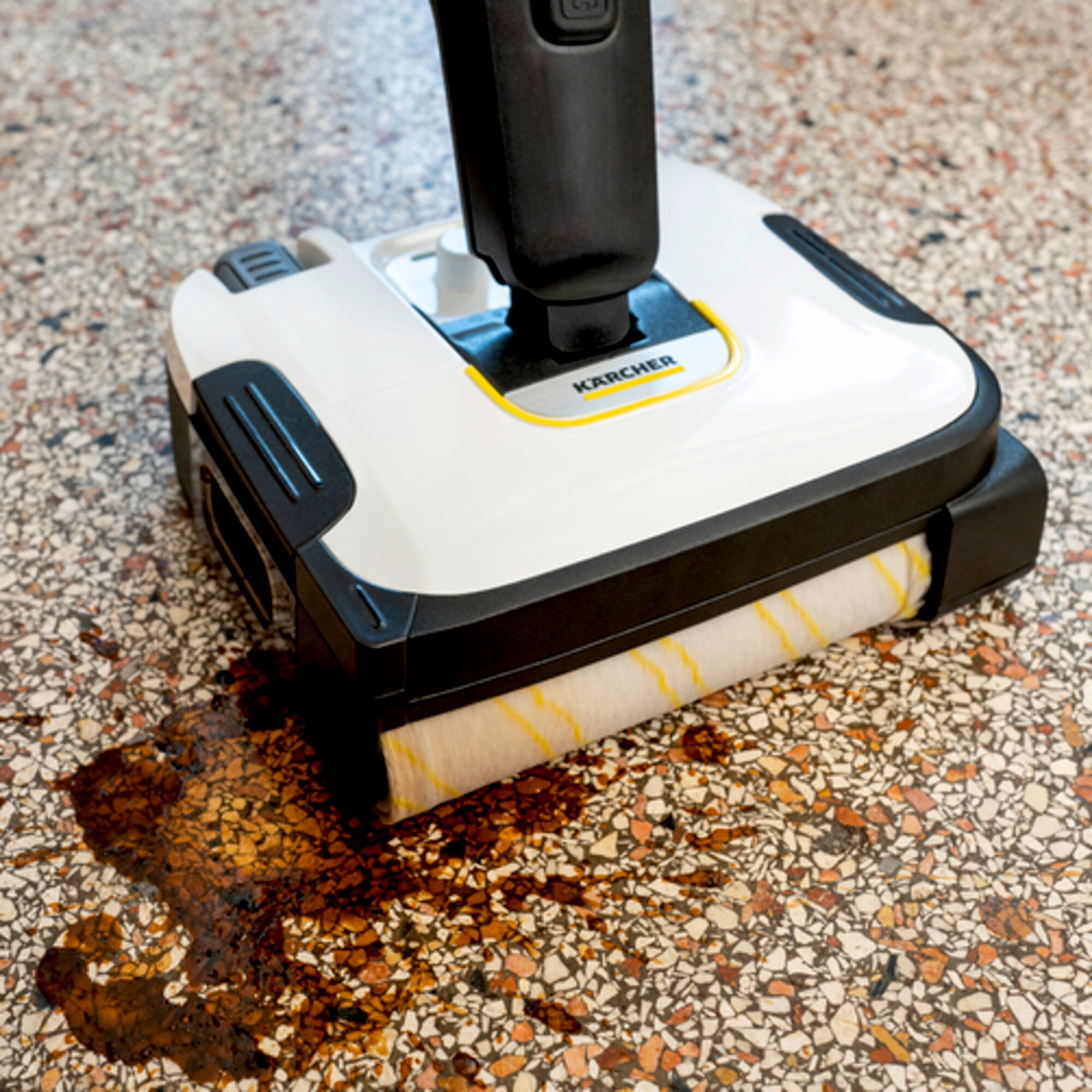 * The Kärcher floor cleaner achieves up to 20% better cleaning performance than a traditional mop with floor cloth cover in the "Wiping" test category. Refers to average test results for cleaning efficiency, dirt pick-up and edge cleaning. ** The FC 7 Cordless allows you to achieve a time saving of up to 50% since common household dirt can be removed from hard floors in a single step, doing away with the need to vacuum before wiping.