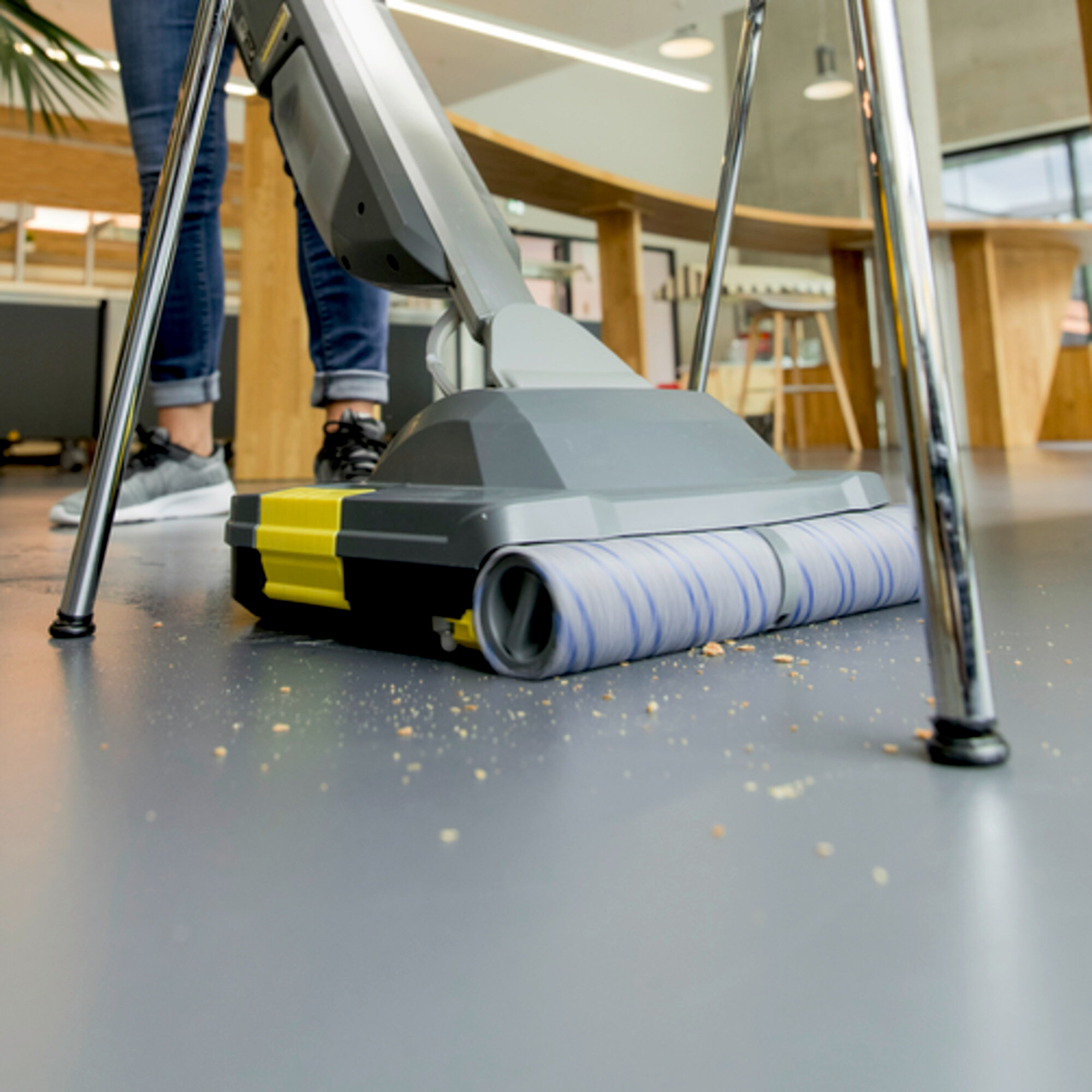 Ideal for hygienic maintenance cleaning and floor disinfection on small areas: The compact BR 30/1 C Bp Pack cordless scrubber drier with microfibre roller technology from Kärcher.Battery platform | 18 V battery platform |