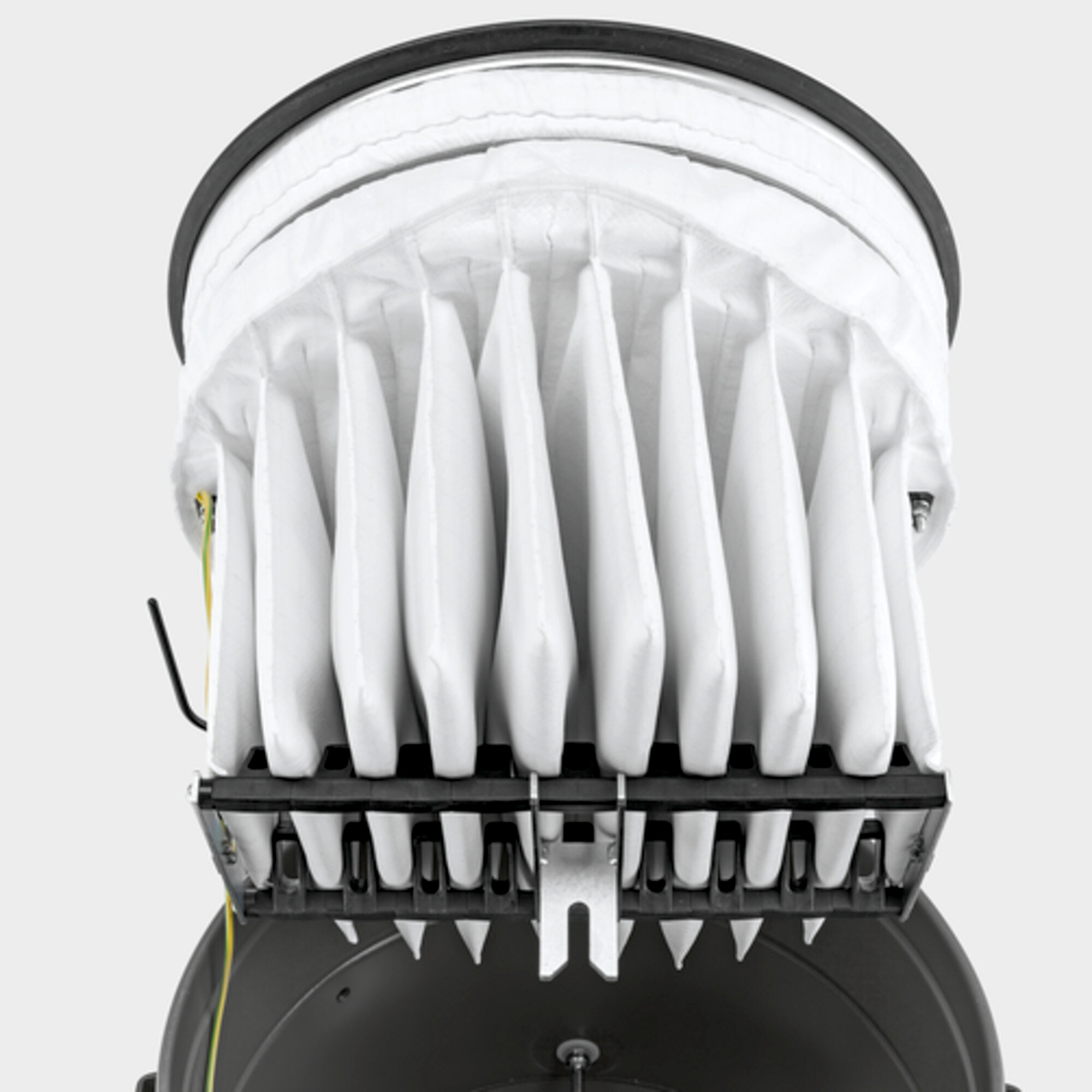 Low-dust emptying thanks to closing mechanism and pressure compensation hose. Simple and safe dust disposal thanks to PE bag.