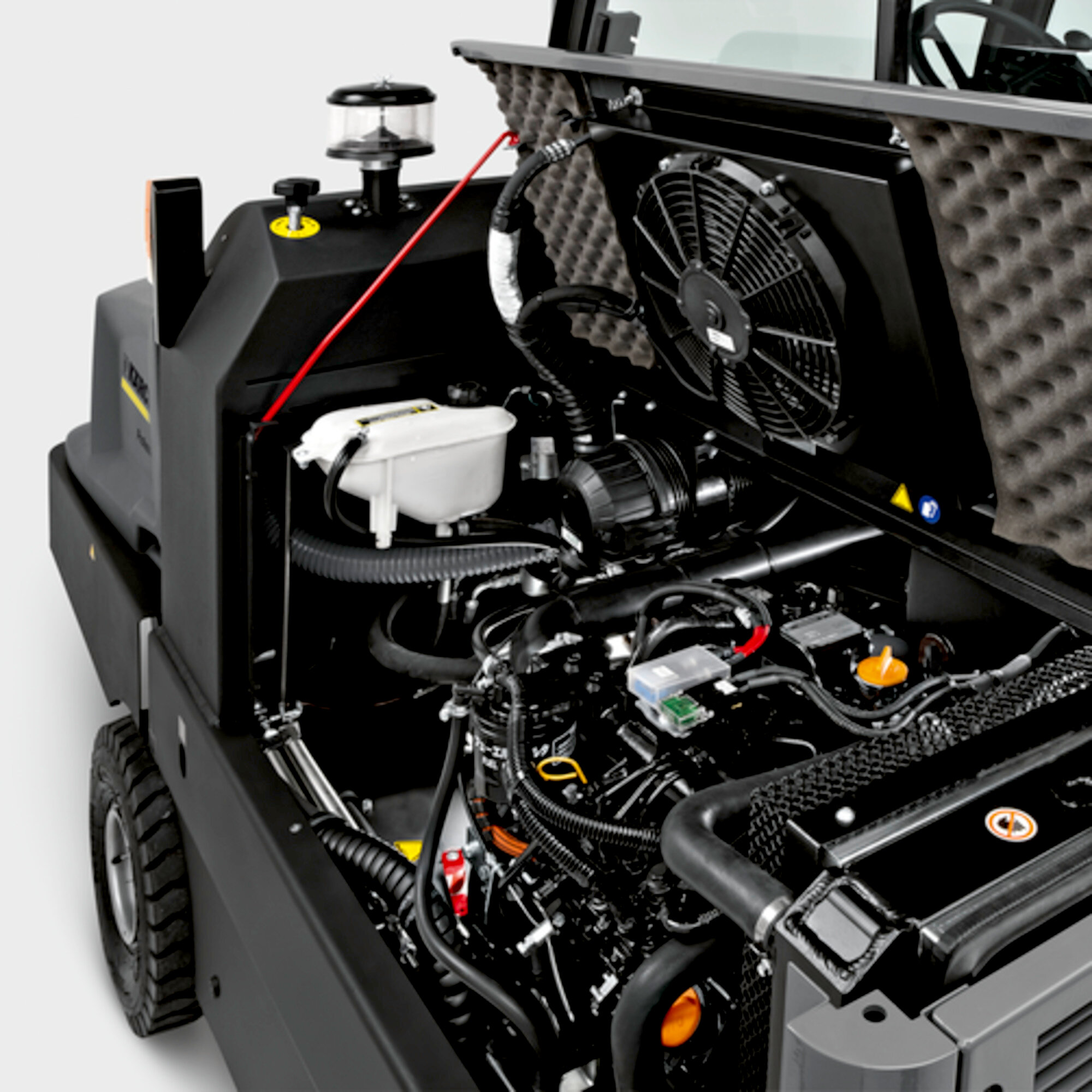 Diesel-powered, fully hydraulic industrial sweeper with three-wheel chassis and rear steering. For tackling tough jobs in the building material or metal-working industries, foundries and other dirt-intensive sectors. With Yanmar 21.6kW engine.Drive type | Diesel |