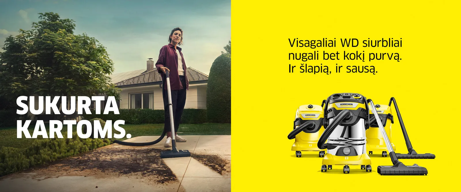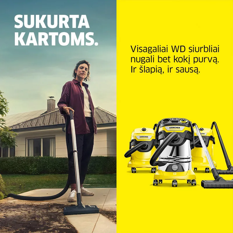 Drėgnas ar sausas – nesvarbu: galingas WD asortimentas pašalina bet kokio tipo nešvarumus. Atraskite Kärcher dulkių siurblius, kurie gali atlikti bet kokią užduotį. Didelė siurbiamoji galia ir greitas nešvarumų pašalinimas nuo visų grindų paviršių sugrąžins WOW jausmą jūsų namuose ir aplink juos. Nesvarbu, ar šlapias, ar sausas purvas, WD su įvairiais priedais yra patikimas sąjungininkas kovojant su nešvarumais.
