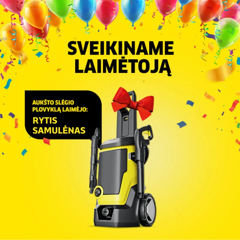 2023 m. birželio 9 - liepos 5 dienomis pirkite „Kärcher“ gaminių mažiausiai už 15 Eur bei užsiprenumeruokite „Karcher“ naujienlaiškį ir dalyvaukite vasaros žaidime, kurio pagrindinis prizas AUKŠTO SLĖGIO PLOVYKLA K 7 WCM PREMIUM.