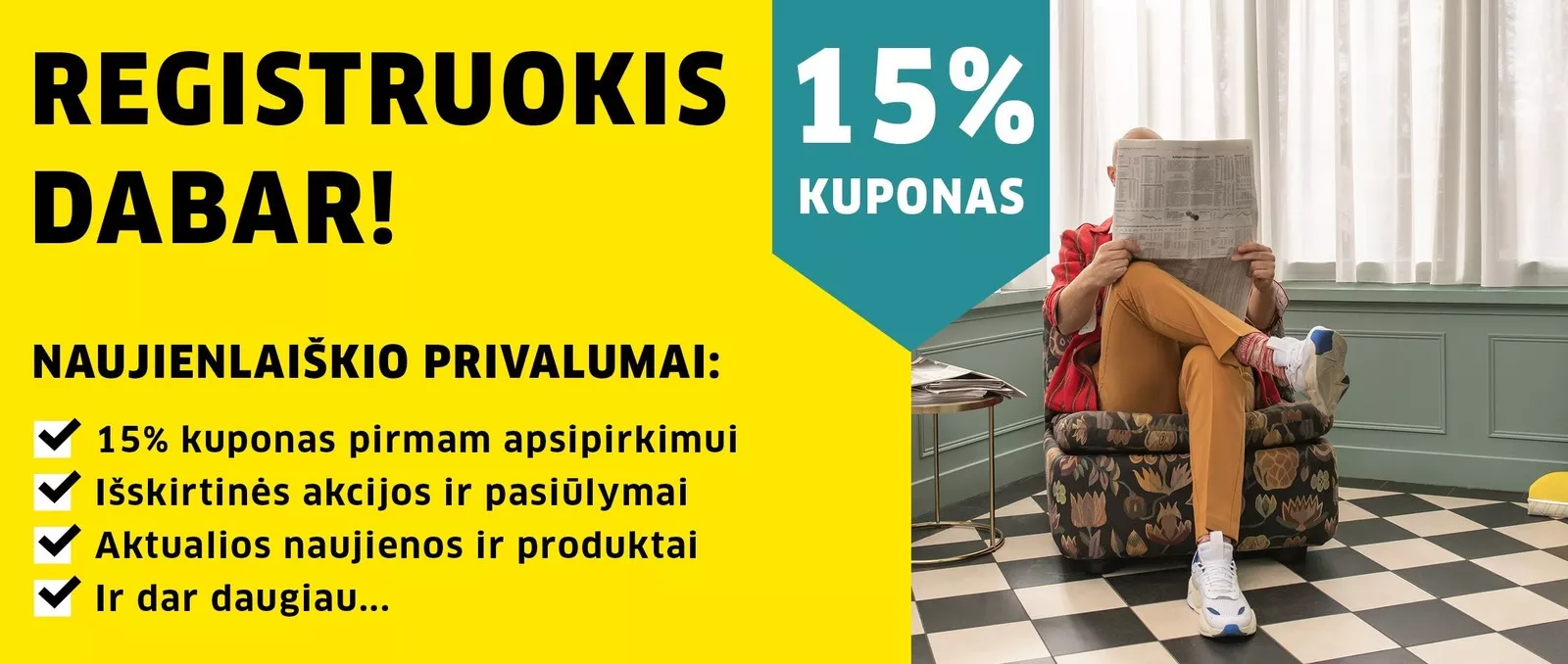 Ir gauk 15% nuolaidos kodą prekėms be nuolaidos bei slaptą nuolaidos kodą atrinktoms prekėms prieš oficialų juodosios savaitė startą.