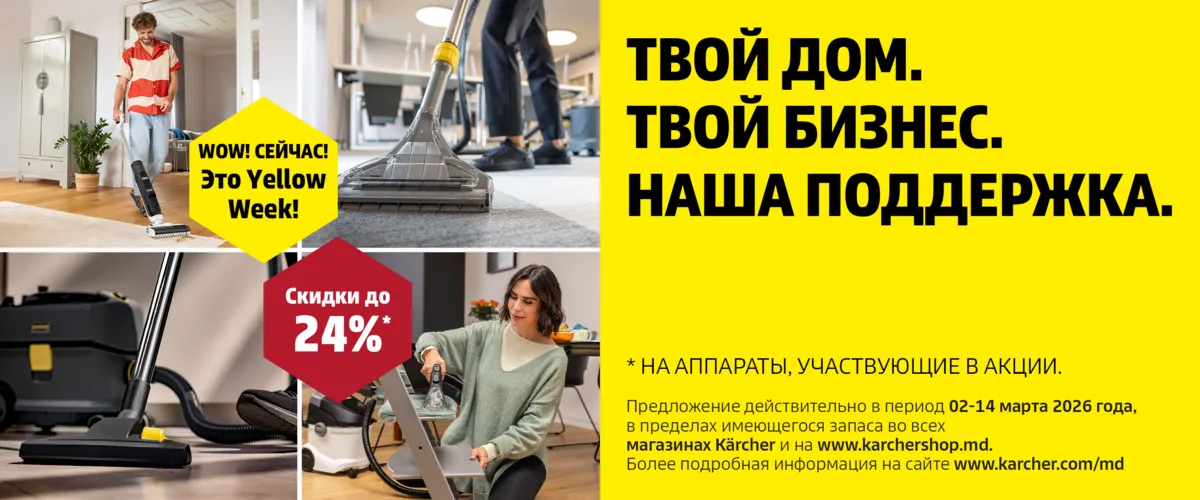Kärcher заботится о комфорте и удобстве своих покупателей. Начиная с 1 марта, все магазины Kärcher в муниципии Кишинёв будут работать также по воскресеньям.