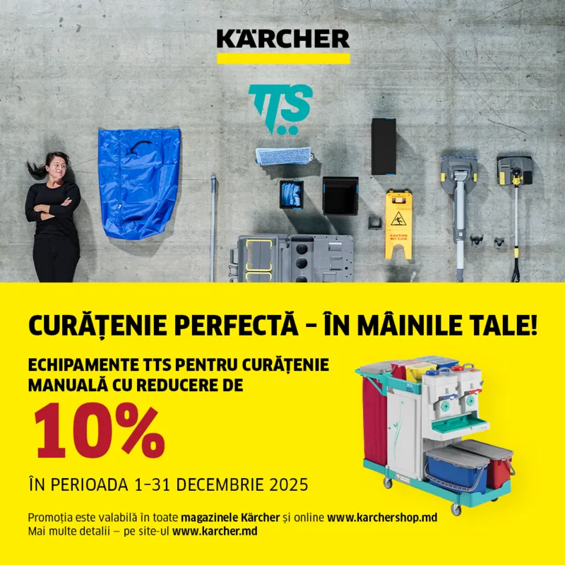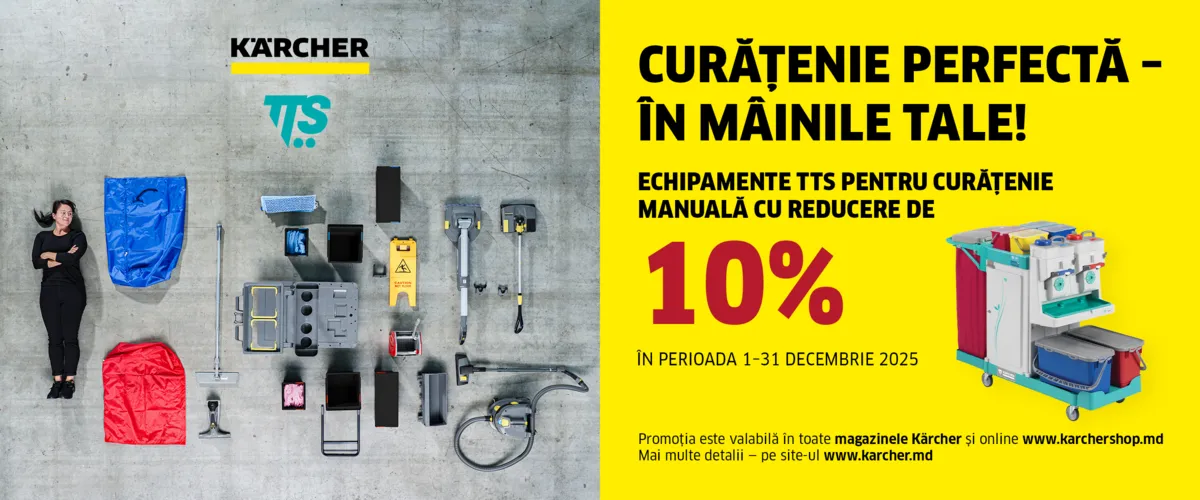 Fiind cei mai mari producători de mașini de curățat din lume, înțelegem faptul că indiferent de locul în care se află, clienții noștri au propriile cerințe în ceea ce privește curățenia. Și înțelegem și că deseori timpul disponibil pentru efectuarea curățeniei este limitat. Din acest motiv, gama noastră de mașini de curățat profesionale, precum și accesoriile și detergenții, sunt create special pentru a îndeplini nevoile clienților noștri. Indiferent de domeniul de activitate sau de locație, produsele Kärcher oferă rezultate excepționale, economie de timp și resurse și ușurința în utilizare: astfel vă puteți concentra pe ceea ce este cu adevărat important în afacerea dumneavoastră.