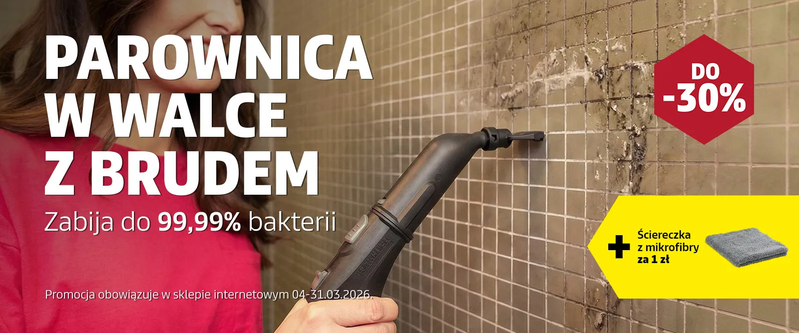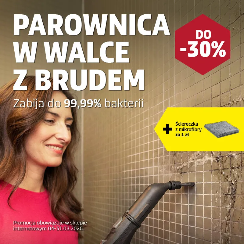 W zestawie taniej! Kupując razem z parownicą: Ściereczkę z mikrofibry (2.643-872.0) otrzymasz za 1 zł. Nie zapomnij dodać produktu do koszyka. Promocja obowiązuje w sklepie internetowym Kärcher 4-31.03.2026 i nie łączy się z innymi promocjami cenowymi.