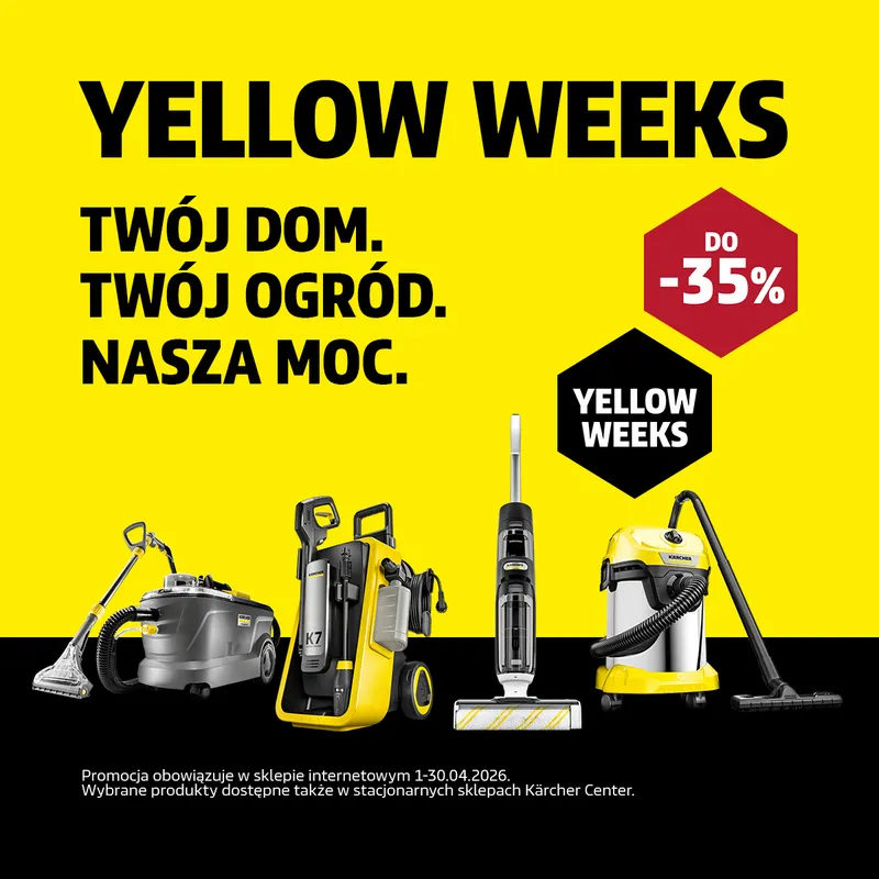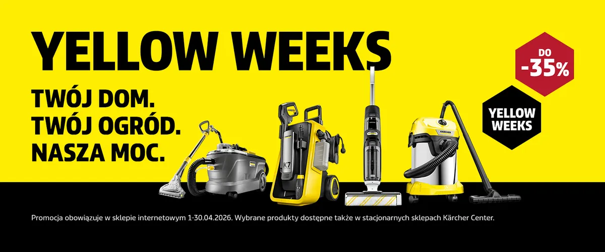 Złap wyjątkowe okazje w sklepie internetowym Kärcher.pl! Promocja Yellow Weeks obowiązuje 1-30 kwietnia 2026.