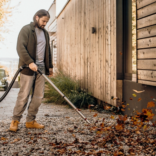 Um aspirador de sólidos e líquidos é uma verdadeira ajuda, mesmo no jardim. Aspire facilmente pequenos ramos, gravilha ou folhas — ou afaste-os utilizando a função de sopro.