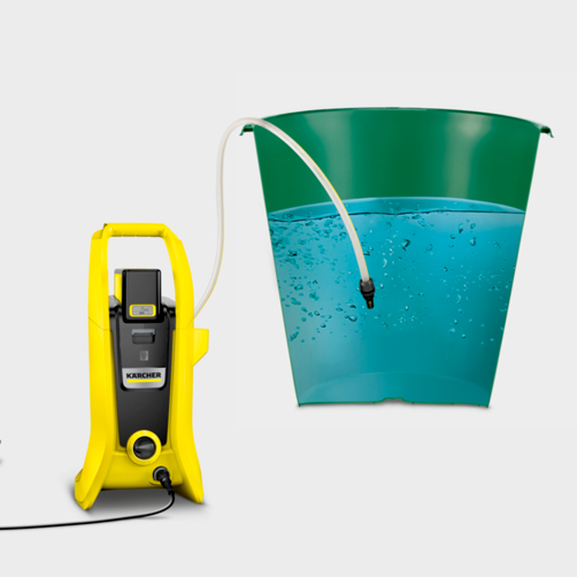 Compatível com a mangueira de sucção Kärcher para limpeza sem necessidade de ligação à água. A mangueira de sucção pode ser adquirida separadamente.