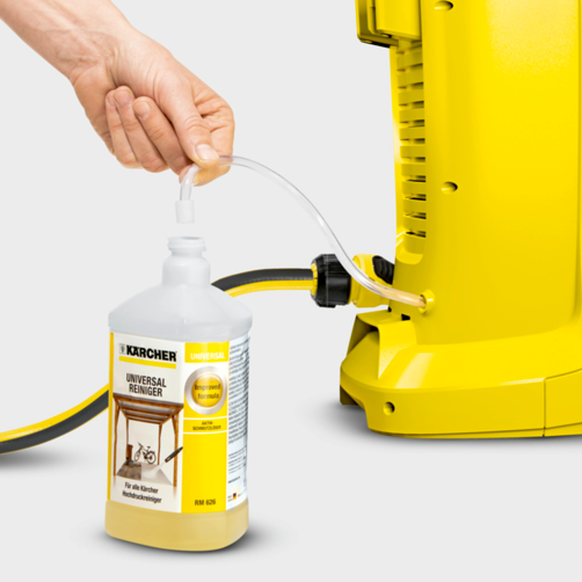 Mangueira de sucção para uso com detergentes. Os detergentes Kärcher aumentam a eficiência e ajudam a proteger e cuidar da superfície que está sendo limpa.