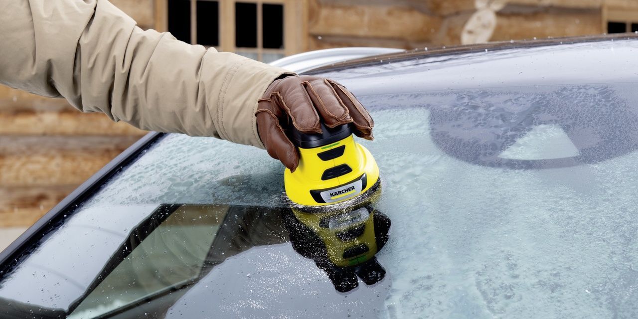 Com o disco rotativo do raspador de gelo, até mesmo o gelo mais resistente nos para-brisas dos carros pode ser removido sem esforço, de uma só vez.