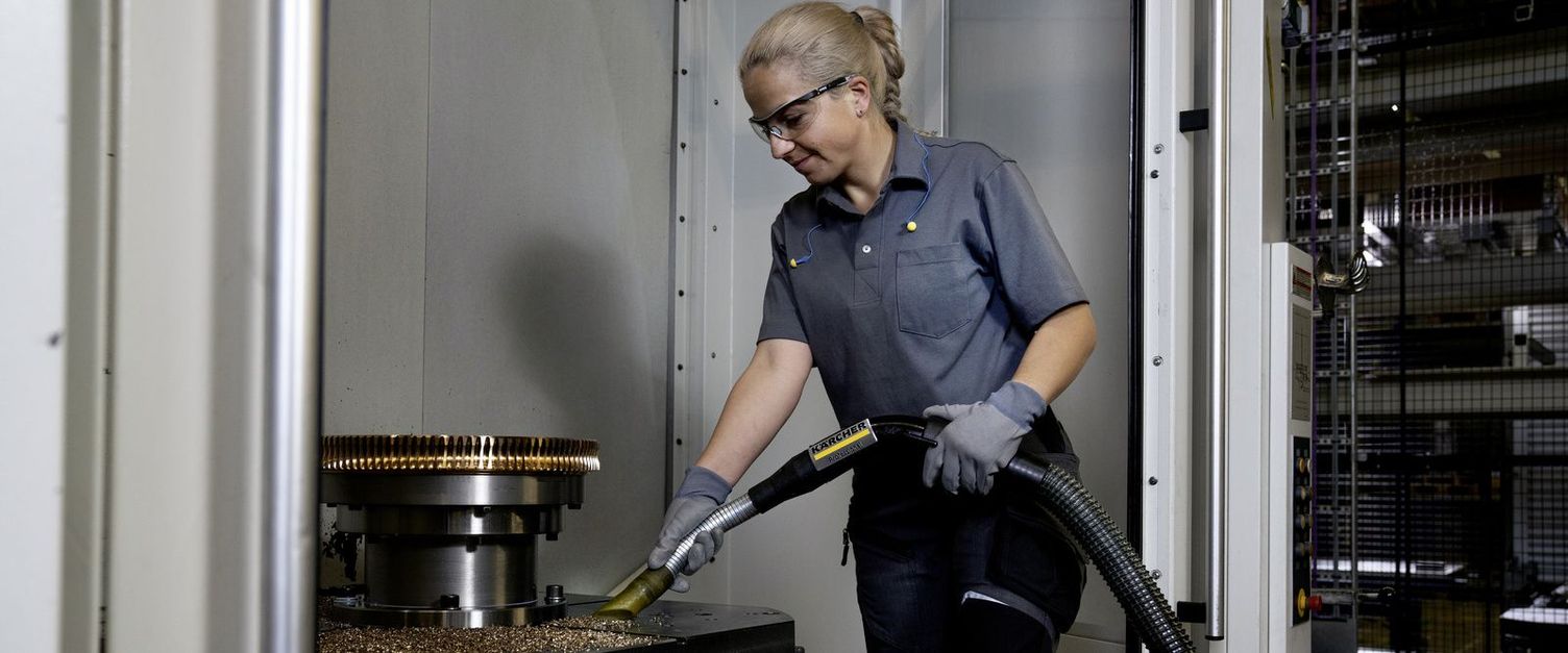 As limalhas de metal que caem das máquinas podem causar acidentes e bloquear as linhas de montagem, levando a paralisações na produção e danos às máquinas. Recomenda-se a limpeza regular do ambiente de produção com um aspirador industrial para extrair o pó metálico e evitar esses problemas. Além disso, a remoção rápida de resíduos de refrigerante e limalhas antes do controlo de qualidade entre as etapas de trabalho melhora a qualidade do produto.