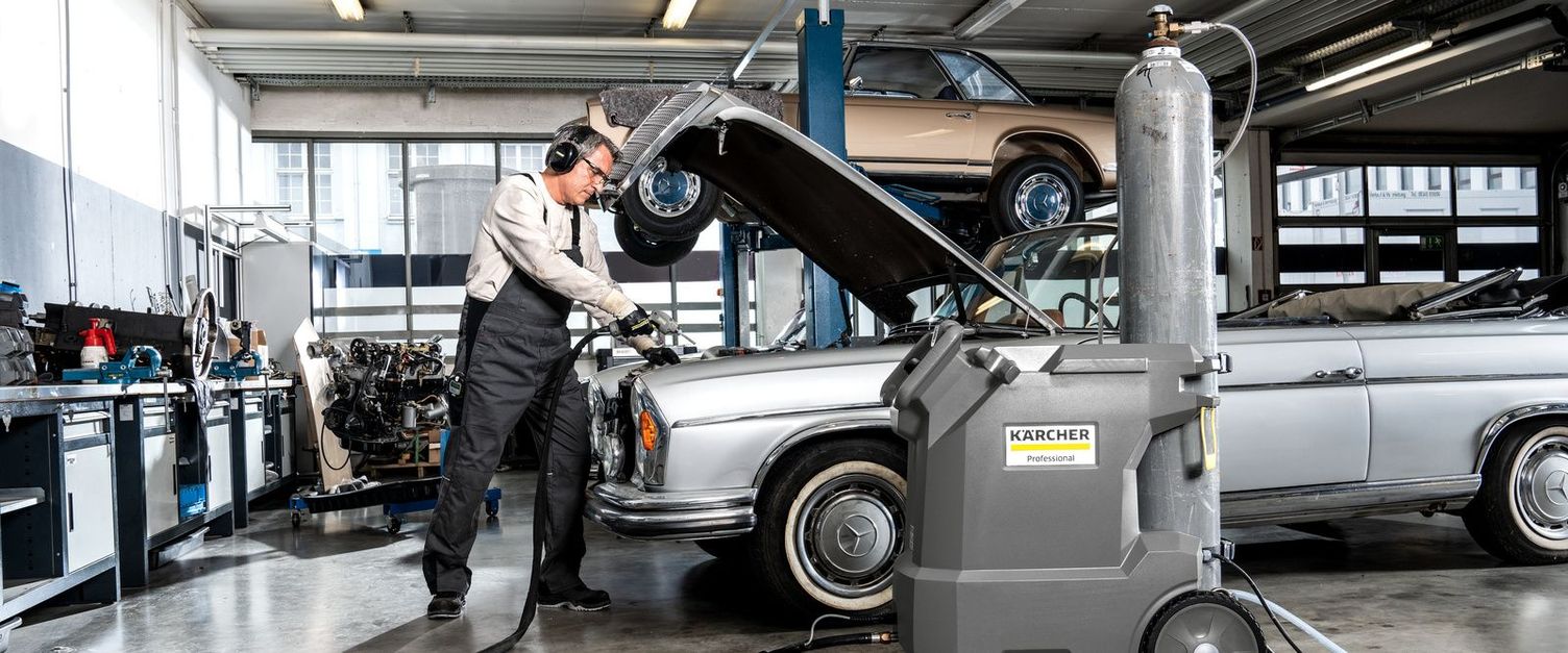 Limpar peças de carro sujas, ferramentas e máquinas é geralmente um trabalho difícil e muitas vezes gera muita sujidade. Isto deve-se ao facto de métodos como o jateamento com areia (sandblasting) deixarem para trás o agente de pulverização, como areia e granulado de vidro. Frequentemente, ainda há limpeza a fazer após a limpeza das peças.