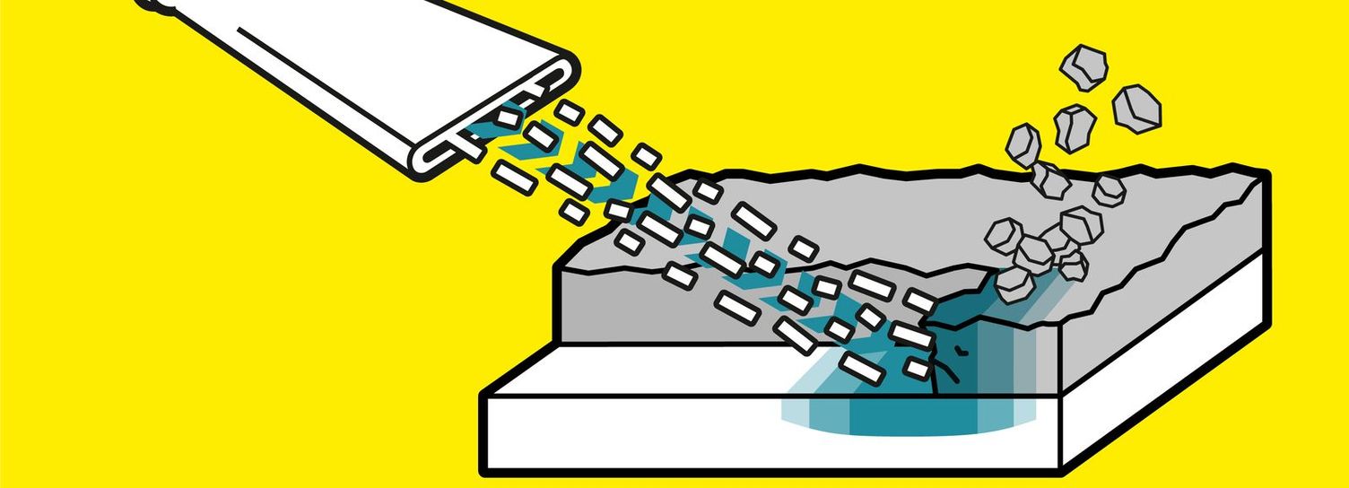 Partículas subsequentes penetram nas rachaduras da sujidade incrustada e da tinta aplicada e sublimam lá de um estado sólido para um estado gasoso. Isto envolve um aumento de volume de 400 vezes e a sujidade é expelida numa escala microscópica.