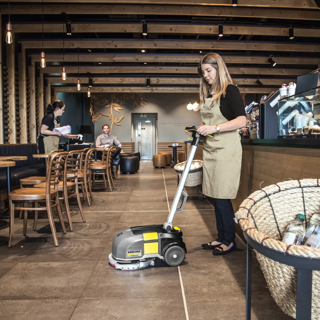 Основное преимущество компактных машин — высокая маневренность. Небольшие габариты и компактная конструкция позволяют легко транспортировать их между объектами. Благодаря узкому корпусу машина легко добирается до самых труднодоступных зон — между мебелью в кафе, вдоль витрин магазинов или в тесных офисных коридорах. Типичный представитель — поломоечная машина BR 30/4 C Bp Pack с баком на 4 литра и весом всего 14 кг.